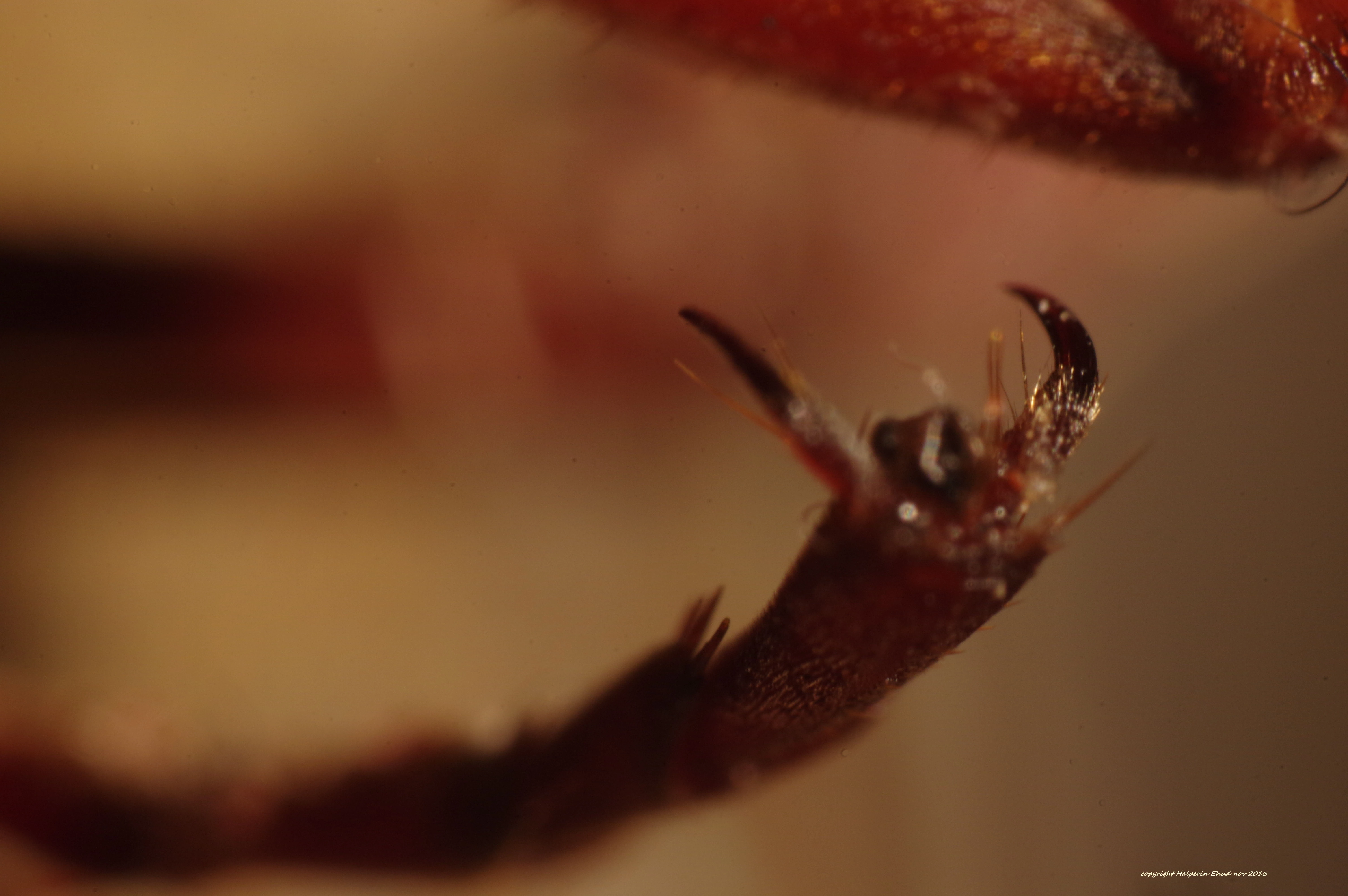 As both protocules and macrovolutes, most insects and arachnids possess two tarsal claws at the end of each foot. This allows us to cling to surfaces, and as macrovolutes, provides us with a fine, delicate grip that surpasses the dexterity of your own. Though we lack thumbs, for most of us, this is well supplemented by our mouthparts and additional limbs.